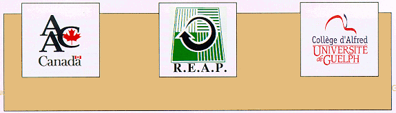 Resource Efficient Agricultural Production (REAP) - Canada C.P. 125, Maison Glenaladale, Sainte-Anne de Bellevue (Oc), H9X 3V9 Téléphone: (514) 398-7743; télécopieur: (514) 398-7972 Courrier électronique: Reap@interlink.net Site internet: http://www.reap.ca/ Collège d'Alfred - Université de Guelph Groupe Recherche et Transfert de technologie 31, rue St-Paul, Alfred (On) KOB 1AO Téléphone: (613) 679-2218, poste 600; Télécopieur: (613) 679-2420 Courrier électronique: PBlais@alfredc.uoguelph.caLa réalisation de ce guide de production a été possible grâce au soutien du programme CanAdapt de l'Ontario, administré par le Conseil de l'Adaptation Agricole (CAA) de l'Ontario: 90 Woodlawn Road West, Guelph (On) NlH lB2, Téléphone: (519) 822-7554; Télécopieur: (519) 766-9775, courrier électronique: canadapt@adaptcouncil.org; Site internet: www.adaptcouncil.org.