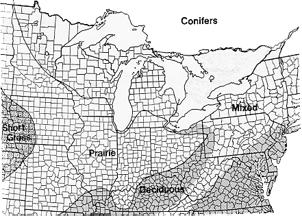 Figure 2. Map of north central United States showing peninsula-like projection of prairie vegetation between the shortgrass region and the forested areas at the time of the "Xerothermic period" as viewed by Transeau ( Stuckey, 1981)
