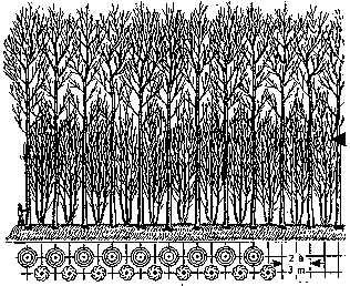 Figure 4. Two row windbreak system with two different species and harvest cycles (Soltner, 1991)