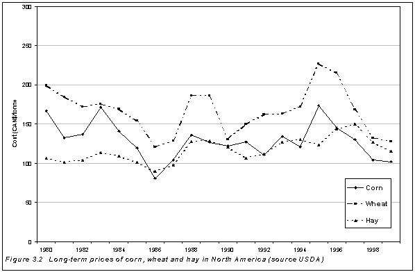 3.2 Long-term prices of corn, wheat and hay in North America 30