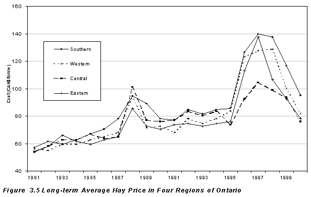 3.5 Long-term average hay price in four regions of Ontario 32