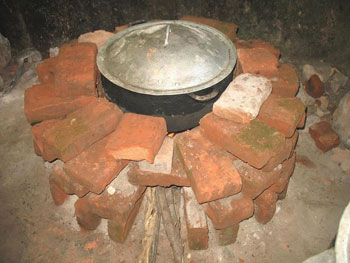 The first prototype of the Noflay was built in the NATC kitchen in The Gambia in September 2011. The stove was brick intensive as it used large bricks and was built for a commercial cooking pot. However, the performance of the stove appeared to be excellent and the design was well understood and appreciated by local villagers who saw it in operation.